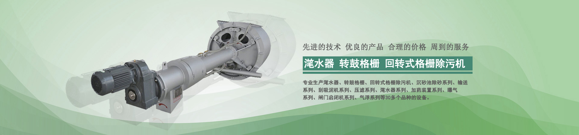 本公司目前專(zhuān)業(yè)生產(chǎn)轉(zhuǎn)鼓式精密過(guò)濾器、轉(zhuǎn)鼓格柵、回轉(zhuǎn)式格柵除污機(jī)、沉砂池除砂系列、輸送系列、刮吸泥機(jī)系列、壓濾系列、潷水器系列、加藥裝置系列、曝氣系列、閘門(mén)啟閉機(jī)系列、氣浮系列、曝氣器系列、填料系列等30多個(gè)品種的設(shè)備...